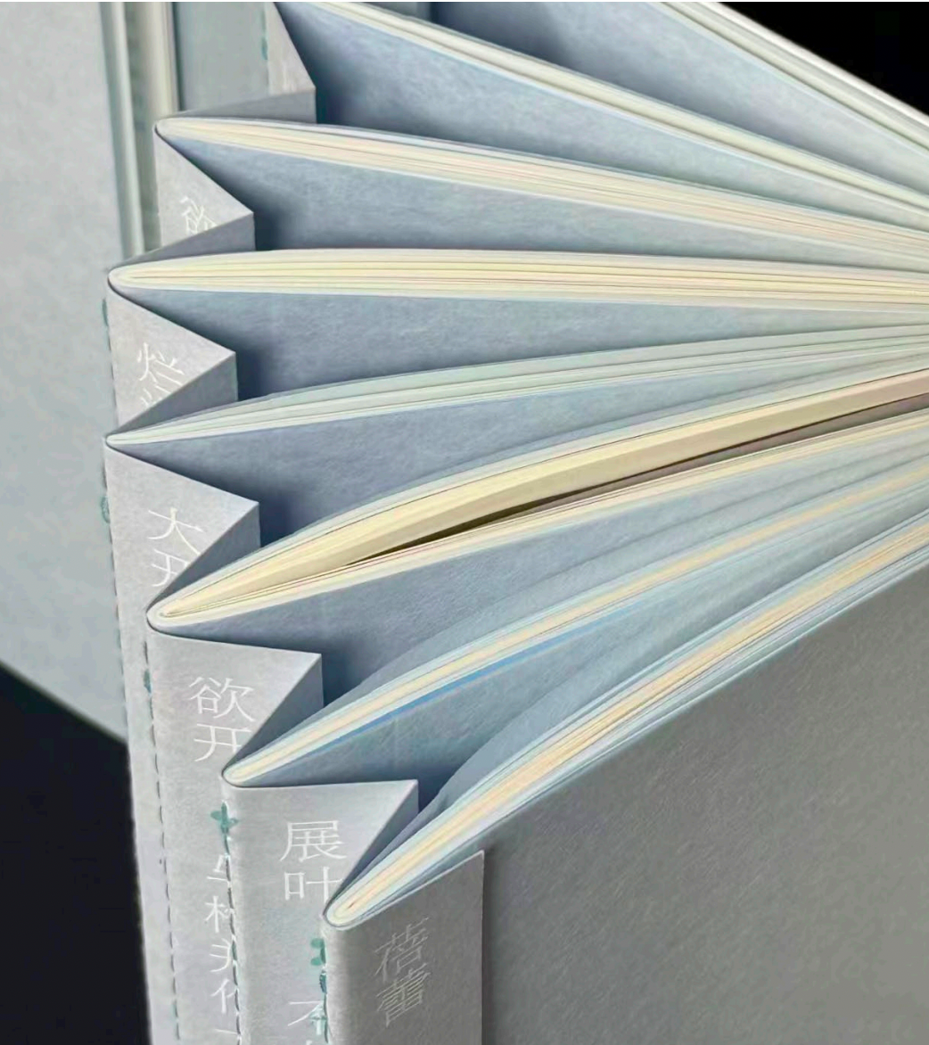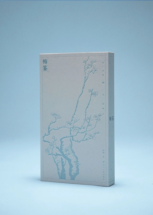 装订上,八册隔离采纳骑马钉车线装订,合于一函,体式上呼应“一册书即八本书”的剪辑想路,也象征由“梅”少许,辐照传统文化八个切面。更见巧想的是,书脊车线被想象成朝上滋长的梅枝,与函套上烫透工艺呈现的烂漫梅花神乎其神——书未开,已是一幅雪中梅枝图。